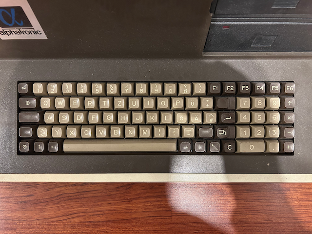 Seltener CP/M-Rechner aus deutscher Produktion. Sogar mit deutscher Tastatur. Die meißten Home-Computer zu der Zeit hatten US-Tastaturen.